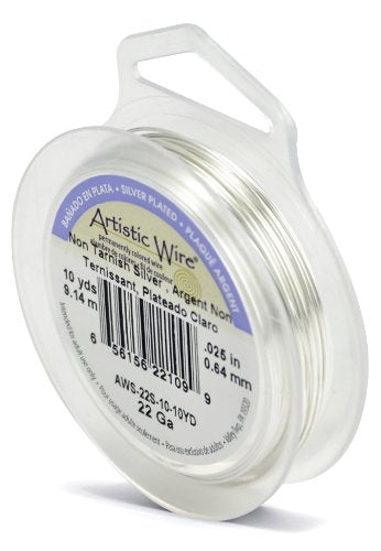 Artistic Wire, 22 Gauge (.64mm), Silver Plated, Tarnish Resistant Silver, 10 yd (9.1 m)