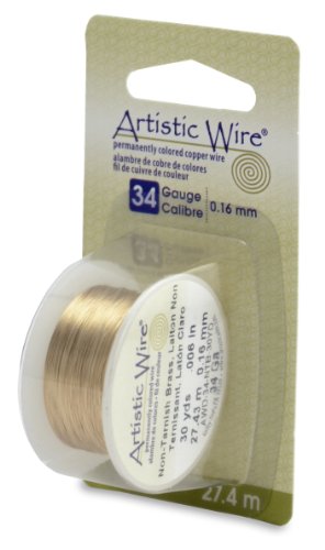 Artistic Wire, 34 Gauge (.16 mm), Tarnish Resistant Brass, 30 yd (27.4 m)