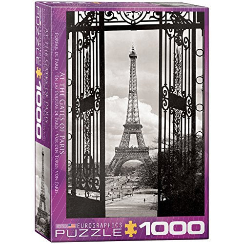 Euro Graphics At the Gates of Paris 1000-Piece Puzzle. Box size: 10" x 14" x 2.37" Finished Size: 19.25" x 26.5". Bring Paris to life piece-by-piece by assembling the beautiful and fabled Eiffel Tower. Strong high-quality puzzle pieces. Made from recycled board and printed with vegetable based ink. This superior quality puzzle will delight and educate all at the same time.