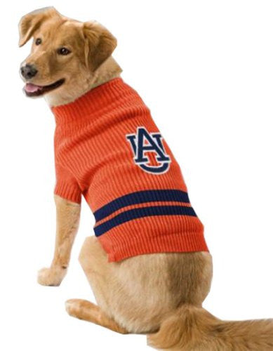 Pet sweater with NCAA school logo in size X-Small, for a dog measuring 6" to 9" from the nape of the neck to the base of the tail.