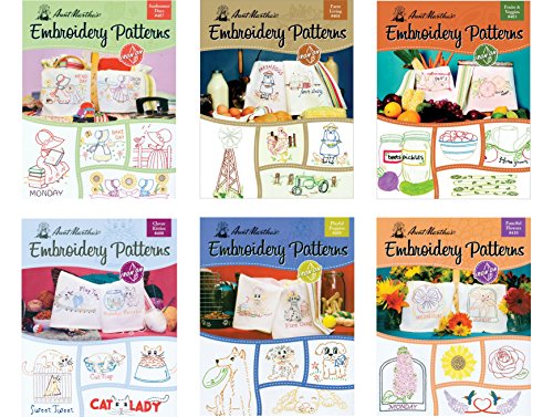 Aunt Martha's- Iron-On Transfer Book (Sunbonnet Days, Farm Living, Fruits & Veggies, Playful Puppies, Clever Kitties, and Fanciful Flowers)