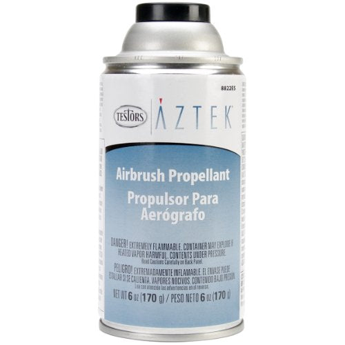 TESTORS-Aztek Airbrush Propellant. Makes spraying possible when a compressor is not available! Use with Aztek and Testor Airbrushes. This package contains one six ounce arousal can of airbrush propellant. Made in USA.