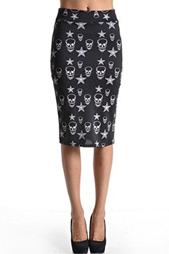 • Azules Women's below the Knee Pencil Skirt - Made in USA (Black Skull / Small)