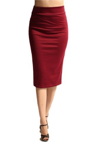 Azules Women's below the Knee Pencil Skirt - Made in USA (Burgundy / Small)