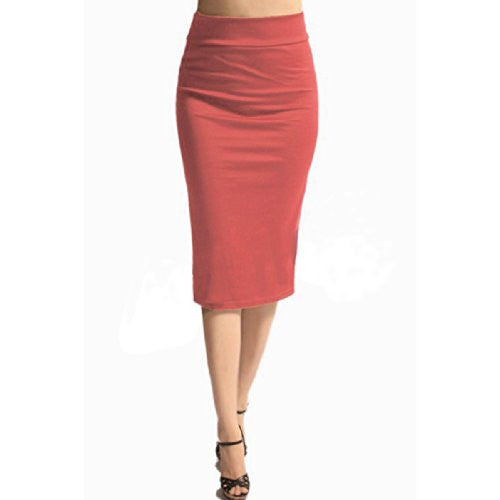Azules Women's below the Knee Pencil Skirt - Made in USA (Coral / Medium)