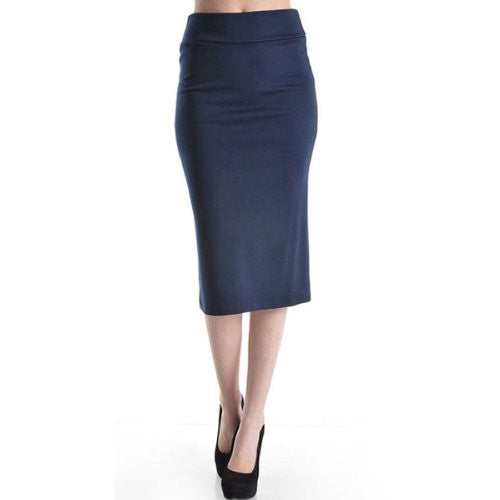 Azules Women's below the Knee Pencil Skirt - Made in USA (Navy blue / X-Large)