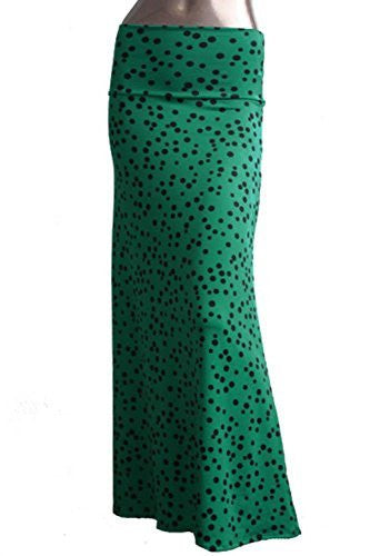 Azules Women's Maxi Skirt -Stretchy, Soft Fabric (Green Polka Dot / Small)
