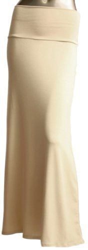 Azules Women's Rayon Span Maxi Skirt (Light Khaki / Small)