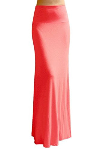 • Azules Women's Rayon Span Maxi Skirt (Light Salmon / Medium)