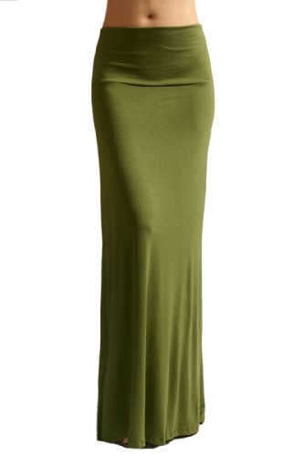 • Azules Women'S Rayon Span Maxi Skirt - Solid (Army Green / X-Large)