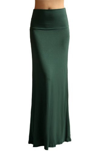 • Azules Women'S Rayon Span Maxi Skirt - Solid (Dark Green / Small)
