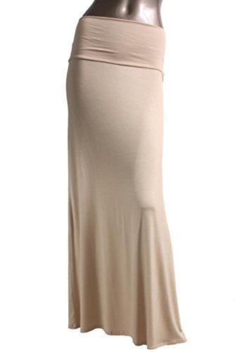 Azules Women'S Rayon Span Maxi Skirt - Solid (Stone / Medium)