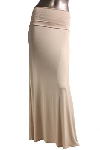 Azules Women'S Rayon Span Maxi Skirt - Solid (Stone / X-Large)