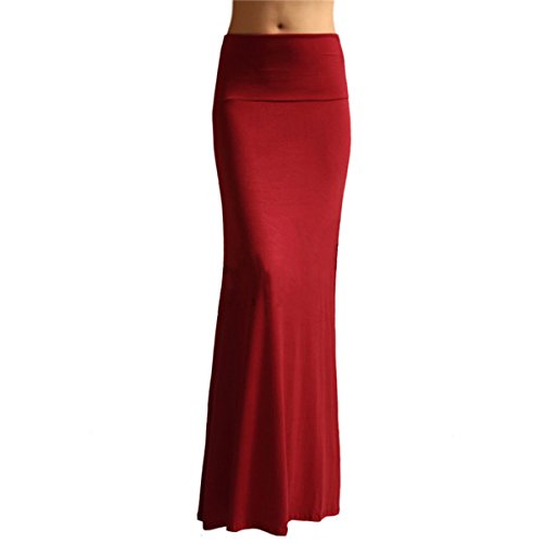 Azules Women'S Rayon Span Maxi Skirt - Solid (Wine / Small)