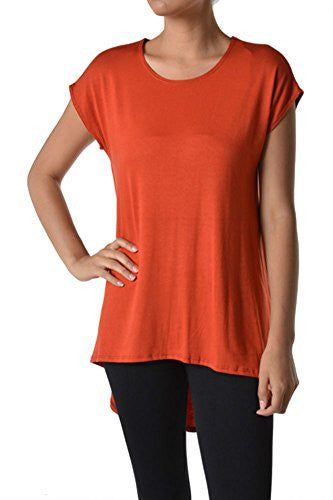 Azules Women's Solid Color Rayon Span High Low Cap Sleeved Tunic - Rust, S