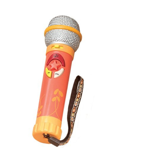 Microphone has 8 pre-recorded tunes. Speed up or slow down the tempo. It's all about you. Shipped in assorted colors. Packed in reversible gift box ready for gift giving. Three AAA batteries included. For ages 18 months to 3 years. Dimensions are 2.5 x 8.2 x 6 inches.