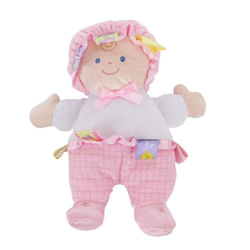 This sweet little dolly is fashioned in multiple-textured fabrics and features patented Taggies for babies to hold.