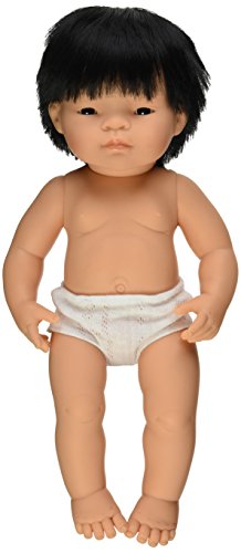 Children love caring for their very own baby doll! The 15'' Anatomically Correct Baby Doll from Miniland is one of the most beautiful dolls on the market. Articulated arms and legs allow children to dress the doll and pose it lying down or sitting up. The lightly-scented doll smells pleasantly of vanilla, and has superbly crafted features. The Baby Boy Doll is anatomically correct, and arrives wearing cute white underwear. The smooth vinyl doll is comfortable to hold and easy to clean. The doll's hair is stitched on, and a water-tight seal prevents water from getting inside the doll at bath time. Playing with dolls helps children develop their imaginations and begin to understand concepts such as family, diversity, and cooperation. Miniland Educational, a leading toy manufacturing company with production facilities in Onil, Spain, is known worldwide for safe, high-quality educational toys. A great deal of thought and research goes into the design and production of Miniland Toys, but we never forget the importance of play. Manufactured in Spain, according to strict European Union safety guidelines. Meets the requirements of specification F963.