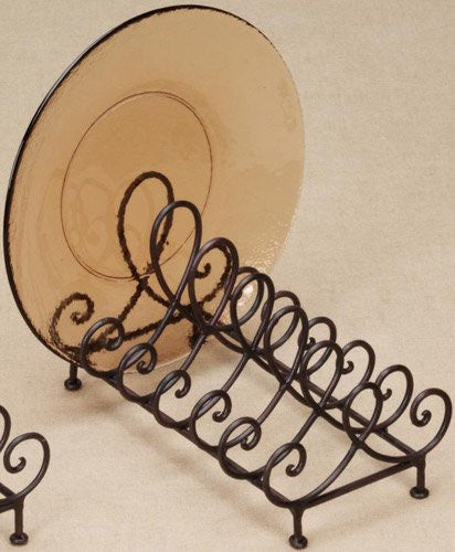 Heavy duty wrought iron will last forever. Attractive scrolled iron looks great with contemporary decor. Excellent for entertaining and serving at buffet style gatherings. Great storage solution for collectors plates.
