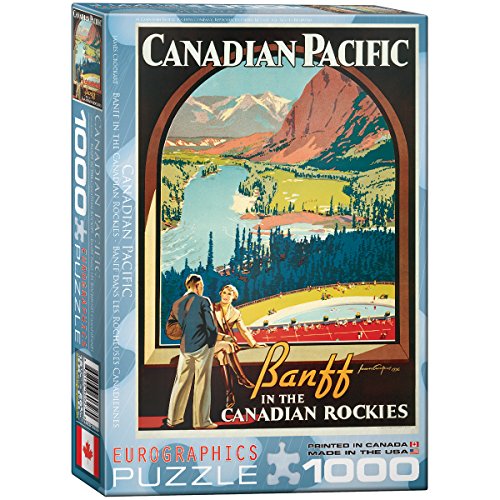 EuroGraphics CP Rail in The Canadian Rockies 1000-Piece Puzzle. Box size: 10" x 14" x 2.37". Finished Size: 19.25" x 26.5". The Banff Springs Hotel is equaled in majesty only by the snow-capped Rocky Mountains that surround it. This icon of Canadian architecture and history has been serving travelers in style since 1888. Strong high-quality puzzle pieces. Made from recycled board and printed with vegetable based ink. This superior quality puzzle will delight and educate all at the same time.