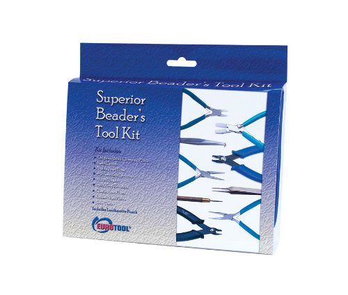 The Superior Beader's Tool Kit from EURO TOOL offers all the essential tools for beading or wire working. In a compact leatherette case this set is perfect for the artist on the go! The following items are included in our lightweight compact tool kit: - Original Bead Crimping Pliers - Split Ring Tweezers - Knot Cutter - Chain Nose Pliers - Nylon Jaw Pliers - Round Nose Pliers - #5 Knotting Tweezers - Sidecutter - Wire Rounder