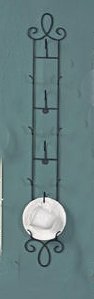 Black Tea Cup Rack. High Quality metal vertical teacup and saucer rack for wall display holds 4 teacups and saucers. 35.5 long x 5.38 wide x 3 deep.The saucer stand and the cup hangs from the hook...Saucers shown are 6" size... Hanging hardware is not included but, there are two mounting circle brackets on the back of the rack for easy hanging...teacups and saucers are not included, the price is for one teacup and saucer rack only.