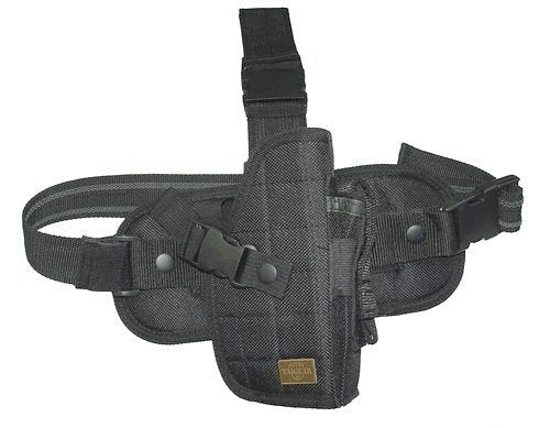 Manufacturer: TAIGEARNice quality tactical leg holster assemblyHas strap to secure to tactical utility beltExtra pouch on holster for magazineAdjustable closure for a tight pistol barrel fitDeluxe non-slip holster pad, and non-slip fully adjustable and removable leg strapDesigned for maximum comfort, additional retention and for most pistols