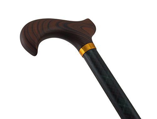 Add a fashionable accent to you daily wear with this 'red tan tartan' plaid print aluminum walking cane. It's 1 inch in diameter, and adjustable in 1 inch increments from 30-39 inches with a comfortable wooden derby handle with a brass collar and a sturdy rubber tip. It is recommended for people weighing 250 pounds or less.