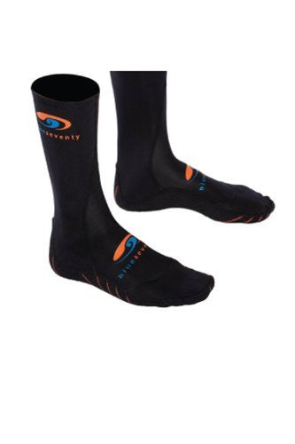 Neoprene socks prevent injury to the sole of foot when walking on rocky surfaces. Form fitting to minimize water entry while swimming. Keeps the feet warm in cold water