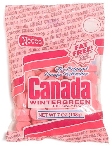 Necco Canada Wintergreen Mint Candy, 7 Ounce -- 12 per case. Sugar lozenge, wintergreent flavor. Peg Bag