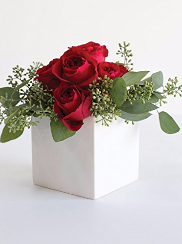 Ceramic Urban Square Vase in White 4.75" Tall x 4.75" Wide