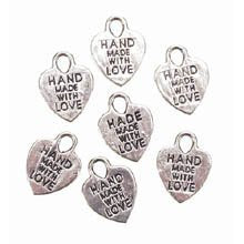 Silver tone metal "Handmade with Love" 70 pieces per package Great for charm bracelet, earrings, necklaces, party favors, and more