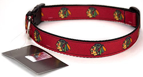 Sports fans come in different shapes, sizes, and even species! Your dog will be a part of the team when you outfit her with an All Star Dogs collar. Featuring the Chicago Blackhawks' logo and colors, your pup will fit in at any tailgate party! Fans of football, basketball, and baseball will love seeing your dog supporting their team. Get your pup in the game with this amazing collar! All Star Dogs collars are American made with top quality materials. Grosgrain ribbon is printed with your team's logo and then sewn onto premium webbing to create a durable product. A simple, black plastic buckle will secure the collar around your dog's neck. Sports fans will not be disappointed with the quality of an All Star Dogs collar! There are no standard sizes for dog collars. Please be sure to measure your dog's neck for correct size. Measure around your dog's neck (with string or tape measure) snugly where you want the collar to lay. If you have any questions or problems with sizes, then please give us a call before placing your order.