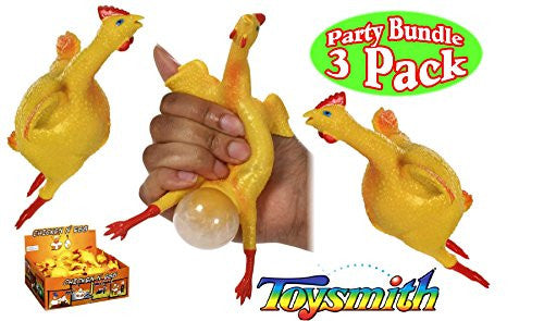 Toysmith Chicken N' Egg Squishy Toy Party Set Bundle - 3 Pack, is AWESOME! An inseparable duo - Chicken and Egg! With just a squeeze, the egg squishes out and begins to swirl. Each Chicken is 7 inches long. Kids & adults can't get enough of these hilarious rubber Chickens! They are perfect for gifts, party favors, stocking stuffers, baskets, special needs, therapy and so much more! For Ages 5 and up - Fun for the whole family!
