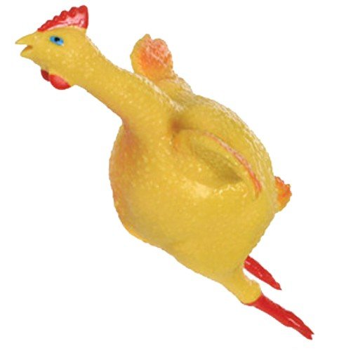 Chicken and Egg! With just a squeeze, the egg squishes out and begins to swirl. Chicken is 7 inches long. Great for party favors, gag gift, stocking stuffers.