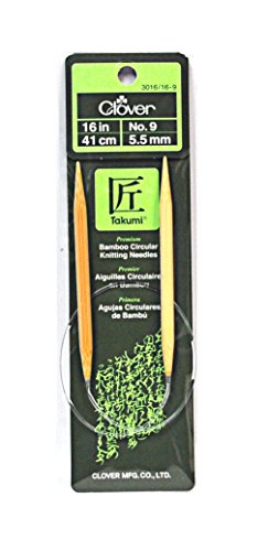 Clover Takumi Bamboo 16 Inch Circular Knitting Needle Size 9. High-quality needles created with the finest natural bamboo & the long nurtured Clover manufacturing technique. With the proper glide of yarn, your hands won't feel tired even after knitting for a long time. Finished to accurate specification to ensure even loops and a beautiful knit finish. Light in weight with a warm natural touch, bamboo is the ideal material for making knitting needles. Each Knitting Needle Is polished for smoothness. Manufacturer Part No.: 3016CV16-9 CHK-3016CV16-9