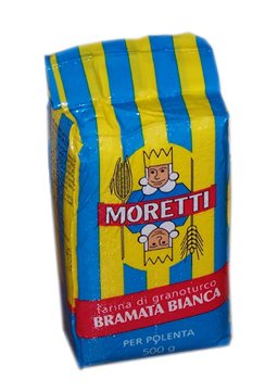 In the Lombardia region, the Moretti family has been attentively growing corn and making choice polenta since 1922. Carefully selected varieties of corn are air-dried in open barns until hardened. The kernels are carefully stone ground and vacuum-packed to retain the cornmeal's natural freshness and flavor. BRAMATA BIANCA | coarse ground white cornmeal | Also know as "Friulana" in the area north of Venice. Perfect with fish or poultry.