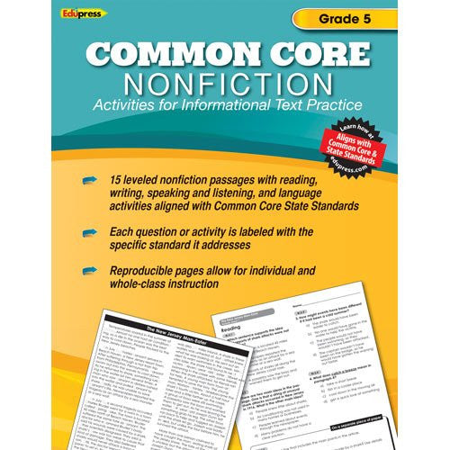 Explore informational text with leveled nonfiction text and Common Core questions and activities! Each book includes 15 nonfiction passages, followed by two pages of Reading, Writing, Speaking and Listening, and Language activities. Each question or activity has the Common Core standard(s) it hits listed next to it, giving teachers and students detailed information about what standards they are practicing. 48 reproducible pages.