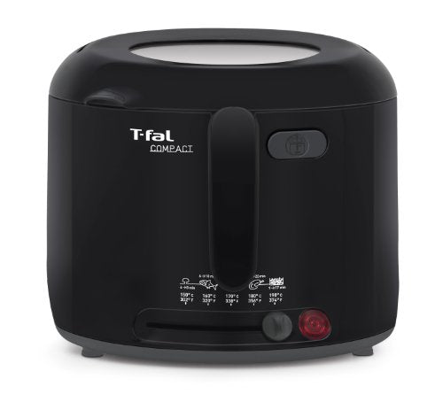 Prepare medium-size batches of delicious fried food with this T-fal FF122851 compact deep fryer. The unit offers a wide range of cooking possibilities, yet takes up minimal space on the countertop and can be easily stored. Use it to make breakfast fare, appetizers, side dishes, main courses, and desserts. The machine holds up to 1.6 liters of oil and up to 2.2 pounds of fresh food (about three servings). The 1600-watt fryer’s concealed heating element quickly and efficiently heats oil, and its temperature indicator light lets you know when oil has reached the correct frying temperature. A simple slide of the lever is all it takes to adjust the heat, and an easy-to-read, on-board guide lists temperature settings and coordinating food icons for quick reference. The unit’s frying basket provides a heat-resistant handle for safely lowering food into hot oil and raising it up when finished cooking, allowing excess oil to drain away. Other highlights include a viewing window for safe monitoring, an odor filter to prevent cooking smells from escaping, automatic lid opening, a fixed bowl, and a sleek, black, cool-touch exterior. Combining exceptional convenience in a space-efficient size, the T-fal FF122851 compact deep fryer makes it easy to prepare restaurant-quality fried food for family and friends.