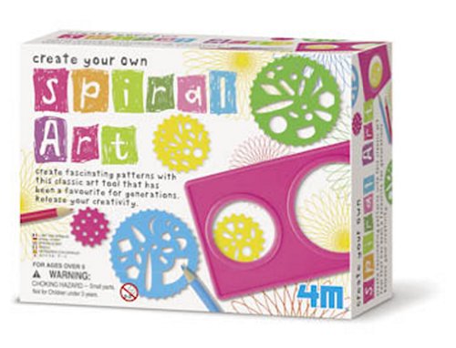 Release your creativity with the 4M Create Your Own Spiral Art Set. Choose from a plethora of unique patterns and colors while creating beautiful stencil designs with this spiral art set. A set of spiral tools, 3 color pencils, art paper, and instructions are included in this art pack. Stencil pattern design is a fun and creative pastime for kids and adults of all ages. Use this spiral set to make gifts like cards or picture frames for friends and family members. Give your child the gift of art with toys that foster creativity and encourage learning. Recommended for children ages 5 and up.