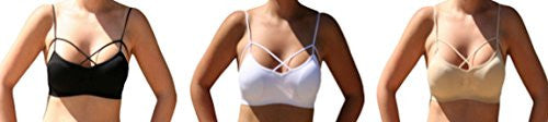 Criss-Cross Strappy Front Design Bra - Black and Criss-Cross Strappy Front Design Bra - White and Criss-Cross Strappy Front Design Bra - Beige, One Size (Pack of 3)