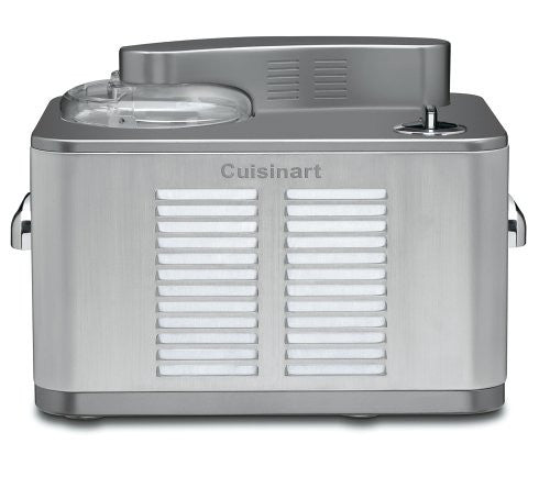 Housed in brushed stainless steel with an embossed logo, this fully automatic small appliance makes up to 1-1/2 quarts of frozen yogurt, sorbet, or homemade ice cream in less than an hour, with no waiting between batches. Due to its built-in commercial-style compressor freezer, prefreezing is not required--just add ingredients, set the 60-minute timer, and the machine takes care of the rest. The unit provides precise temperature control and mixes efficiently to ensure excellent results, and its built-in timer automatically stops the machine when the ice cream is ready to enjoy. For added convenience, its transparent lid features an ingredient spout, and the lid, paddle, and bowl remove for easily washing by hand. An instruction/recipe book comes included. The ice-cream maker measures 15-1/2 by 10-3/4 by 10-1/2 inches and carries a three-year limited warranty. From the Manufacturer The Cuisinart Supreme Ice Cream Maker ICE-50BC Supreme Ice Cream Maker Now you can delight family and friends with decadently rich homemade ice creams, light fruit sorbets, creamy sherbets and deliciously healthy frozen yogurt. The Cuisinart Supreme Commercial Quality Ice Cream Maker has a built in compressor freezer that eliminates the need to pre-freeze the bowl, so frozen desserts and drinks are ready faster. Don't forget, extras can be added during the cycle through the opening of the transparent lid. With the touch of a button, this stunning brushed stainless dessert maker automatically starts the process. Just add the ingredients to the mixing bowl, set the timer and create the smoothest, creamiest frozen desserts. Transparent lid. Transparent Lid with Opening The transparent lid has an opening on top to let you add extra ingredients while the unit is in operation. Plus, you can watch the blending process in action. Add your favorite ingredients - luscious creams, fresh fruits, chocolate chunks, nuts, and even brownies - for the kind of smooth, fabulous frozen treats you usually go out to enjoy. Commercial-style compressor. Built-in Compressor With the Cuisinart Supreme Ice Cream Maker there is nothing to freeze ahead of time. There's no need to pre-freeze the bowl. With a commercial-style compressor built into the Cuisinart Supreme Ice Cream Maker, you can make batch after batch without waiting. The ice cream making process is fully automatic. Just fill the bowl and set the timer. The Cuisinart Supreme Ice Cream Maker turns off when your frozen treat is complete. And, after making one batch, you can make another and another without waiting. One-Step Operation Simply add your ingredients and set the timer. Unit turns off automatically when the cycle is complete and your frozen dessert is ready to enjoy. Powerful Motor Motor arm. The top quality construction of the Cuisinart Supreme Ice Cream Maker includes a heavy-duty, built-in mixing motor, removable bowl, and mixing arm. The Cuisinart Supreme Ice Cream Maker's motor is strong enough to handle ice cream, frozen yogurt, sherbet, and sorbet. Expect professional performance and perfect results. Mixing paddle. Removable bucket. Making Frozen Desserts or Drinks Caution: Unit should remain upright at all times. If the unit is turned on its side or upside down, you will need to put it in upright position and wait 24 hours before using. Prepare recipe ingredients from the Cuisinart recipes book or from your own recipe. If you use your own recipe, be sure it yields 1½ quarts or less. For best results, prepare ingredients in an easy pour container. Place mixing bowl in unit. Pour ingredients into bowl. Put motor arm and lid together. Place stem of mixing paddle in the hole of bottom of the motor arm. Place hole of lid over stem until it is resting on motor arm. Push inward onto mixing arm and tabs will fit into place. Place mixing paddle on stem. Paddle does not fit tightly. (It is snug enough to hol