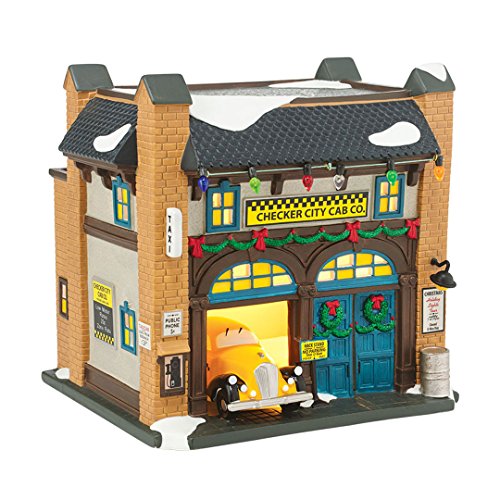 The Checker city cab Co. Was inspired by one of the earliest taxi companies in the United States. Morris marking, of Chicago, IL owned the taxi service as well as the manufacturing company that built the iconic vehicles. Bumble Bee Yellow color was influenced by the founder of hertz car rental and today Yellow is the most popular color for taxis. Designed to reflect the crowded, bustling city lifestyle, our Checker city cab Co. Has two garage bays, the open one features a taxi that has just been serviced. Trimmed with decorative lights over the doors, there is also a 1930s style lamp to light the driveway.
