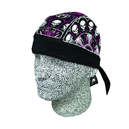 Danbanna Black White Pink Twisted Metal Skulls Headwrap Doo Rag Durag Sweatband