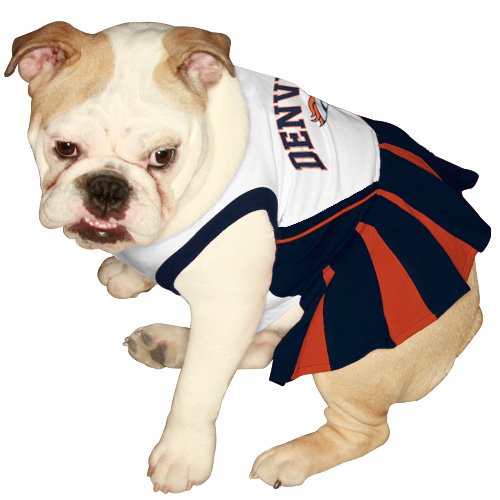Pet cheerleader dress with NFL school logo in size Medium, for a dog measuring 14-inch to 18-inch from the nape of the neck to the base of the tail