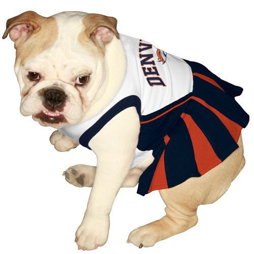 Pet cheerleader dress with NFL school logo in size Small, for a dog measuring 8-inch to 12-inch from the nape of the neck to the base of the tail
