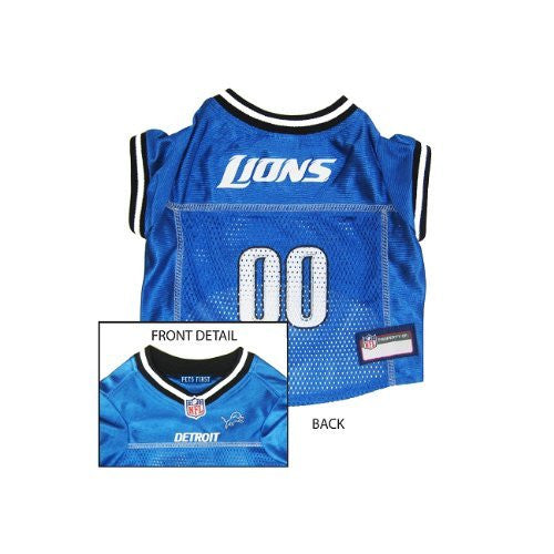 Official NFL Detroit Lions Pet Jersey. 100% Satin And Poly Mesh Jersey With Woven Trim On Neck And Sleeves. Back Has Screen Printed Logo Type, Numbers, And Woven Jock Tag. Front Has Screen Printed NFL Team Logo. .