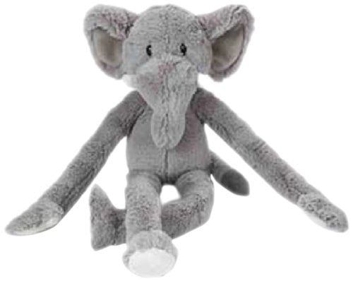 Multipet's Swingin' Safari Elephant plush dog toy with extra long arms and legs with squeakers.