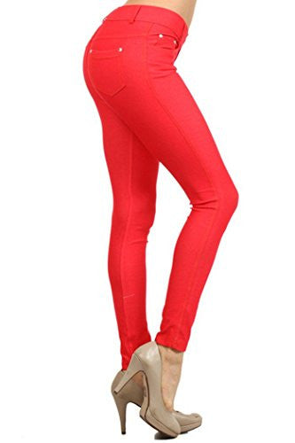 Fashion Mic Womens Pull On Cotton Blend Color Jeggings (Medium/Large, Red)