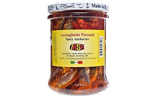 IASA ~ Italy;Spicy Anchovies;Whole anchovies packed in Red Chili Peppers and tomato with olive oil;200 gr Jar;Hand processed and packed
